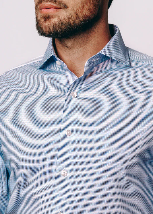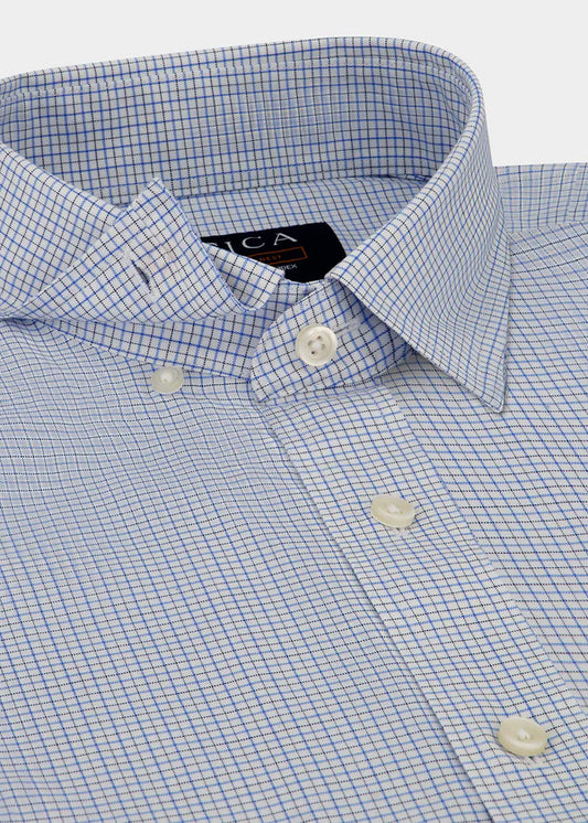 Atica Micro Blue Check Long Sleeve With Hidden Button-Down Collar Classic Fit Shirt