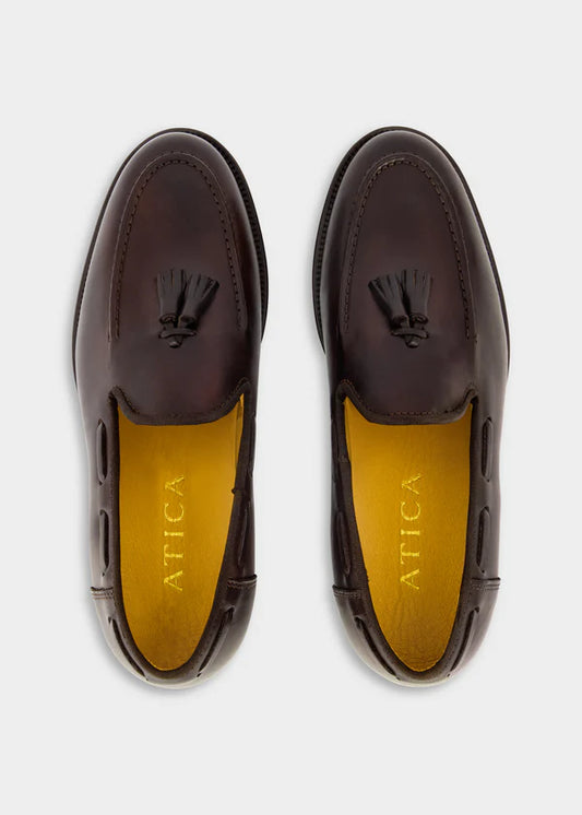 Atica Italian Brown Tassel Loafer Shoe on clearance