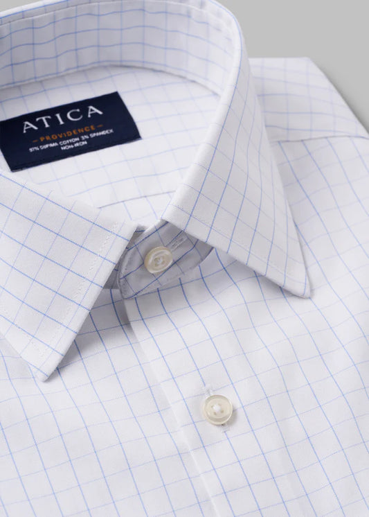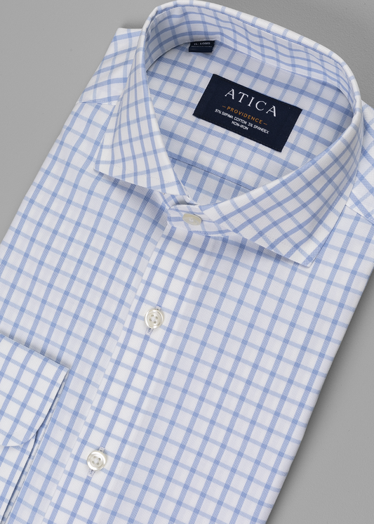 Atica Providence Blue Windowpane Spread Collar Dress Shirt