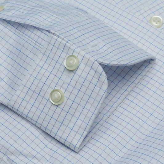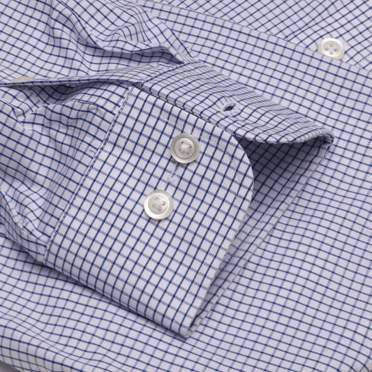 Cooper and Stewart Blue and White Grid Check Classic Fit Dress Shirt