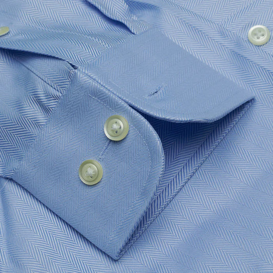 Cooper and Stewart 100% Cotton Non-Iron Blue Herringbone Shirt
