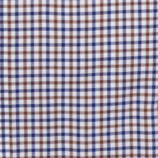 Cooper and Stewart Blue and Brown Check Tailored Fit Spread Collar 100% Cotton Non-Iron Shirt