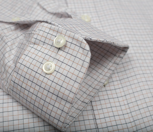 Cooper and Stewart White Grid with Tan and Black Check on Dobby Button Down Non-Iron Shirt