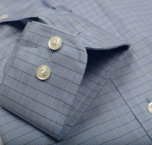 Cooper and Stewart Small Blue With Yellow Check Button Down Non-Iron Dress Shirt