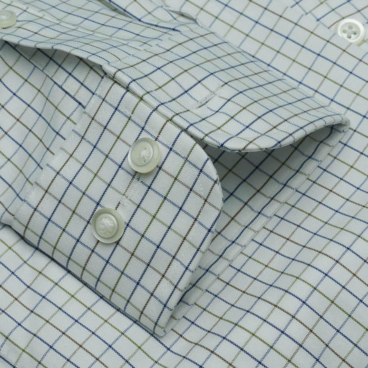 Cooper and Stewart Off White with Blue and Green Check Button-Down Non-Iron Dress Shirt