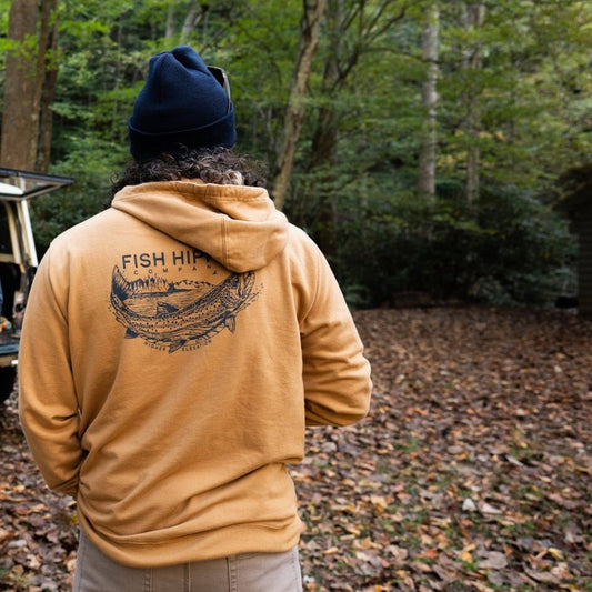 Fish Hippie Drifter Trout Hoodie in Amber on clearance