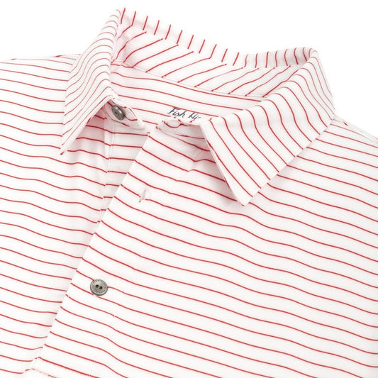 Fish Hippie Knox White and Red Stripe Performance Polo on clearance