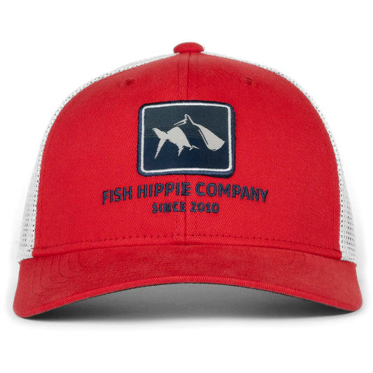 FISH HIPPIE TRUCKER HAT RED on clearance