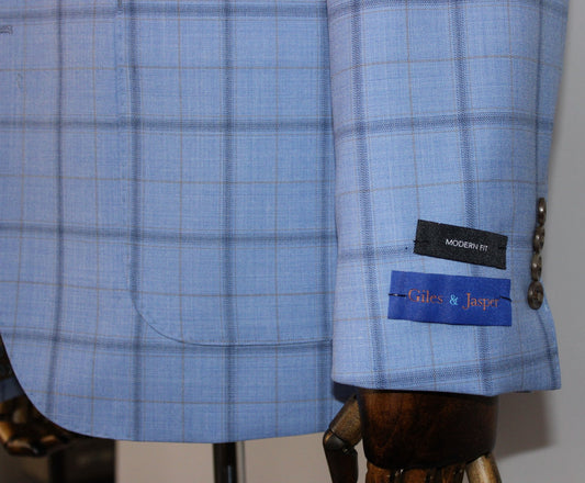 Giles and Jasper Modern Fit Blue Windowpane Sports Coat