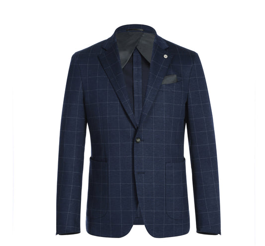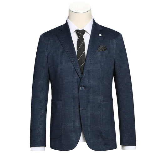 PF20-7 Men's Blazer Slim Fit Half Canvas Navy Glen Plaid Sport Coat