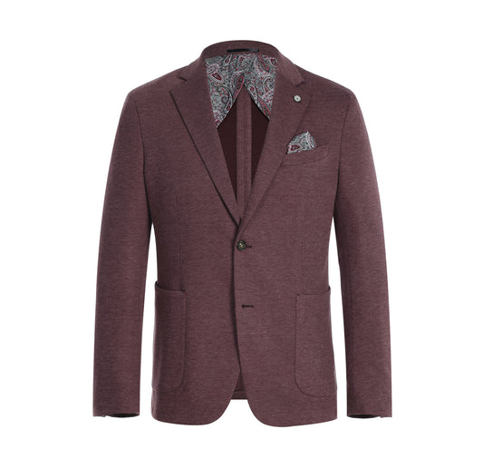 PF21-5 Men's Slim Fit Half-Canvas Solid Brick Red Suit Jacket