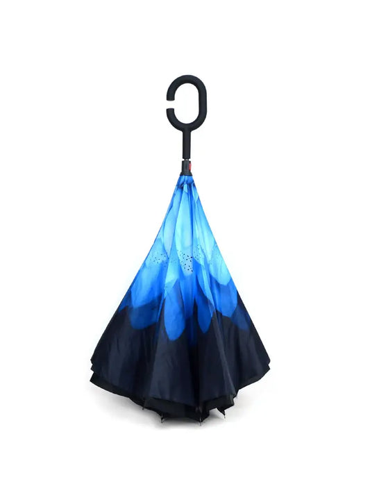 Parquet Blue Flower Double Layer Inverted Umbrella