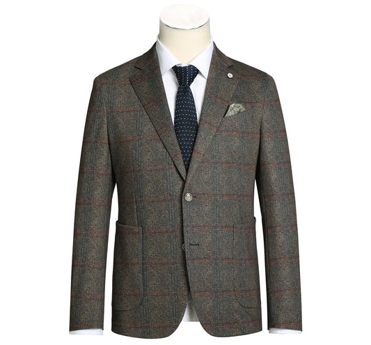 PF20-9 Men's Blazer Slim Fit Half Canvas Brown Windowpane Sport Coat