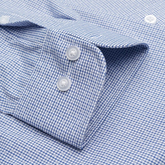 Thomas Dylan Blue Crossfire Dobby Check Spread Collar Dress Shirt