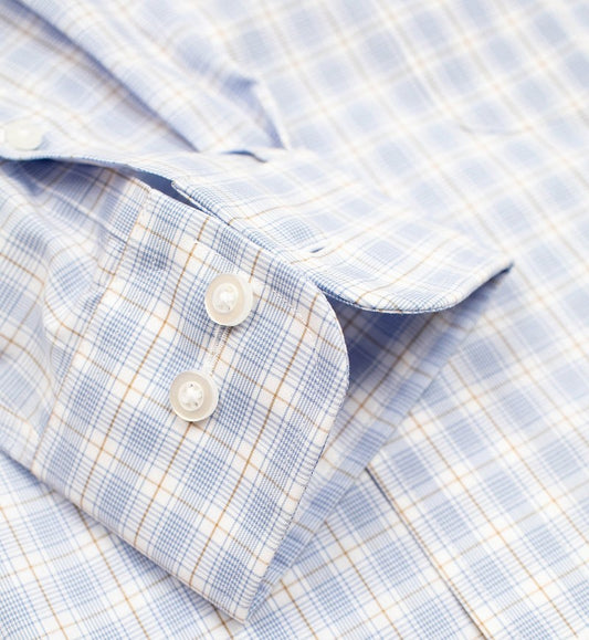 Cooper and Stewart White Ground Blue/Tan Check Button Down Collar Dress Shirt