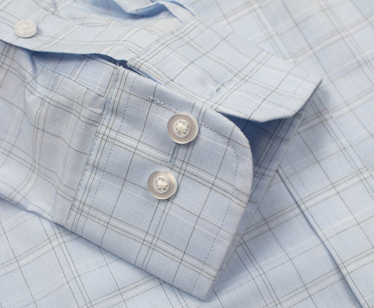 Thomas Dylan Light Blue Ground Plaid with White Button Down Dress Shirt