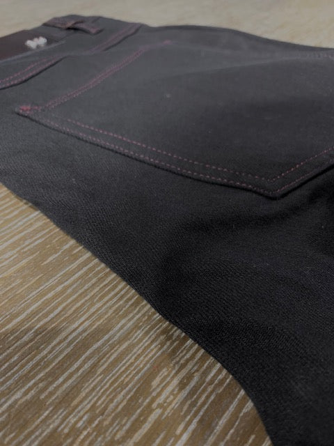 ENZO Alpha-359 Denim 5 Pocket Jean in Black with Mauve Stitching