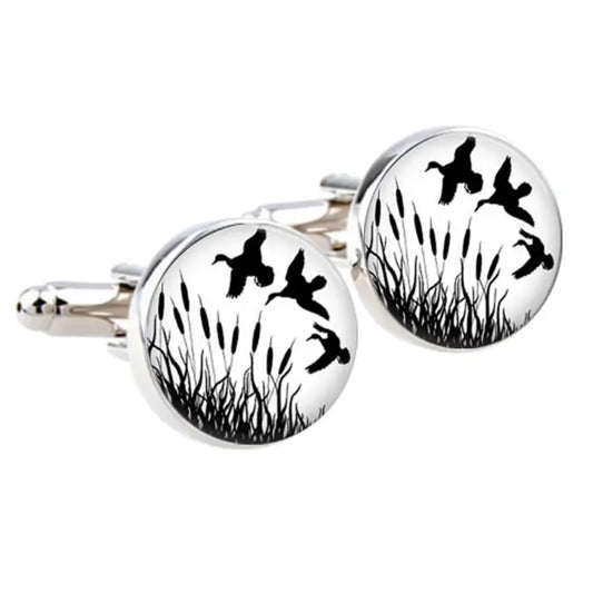 Bassin and Brown Flying Ducks Cufflinks - White/Black