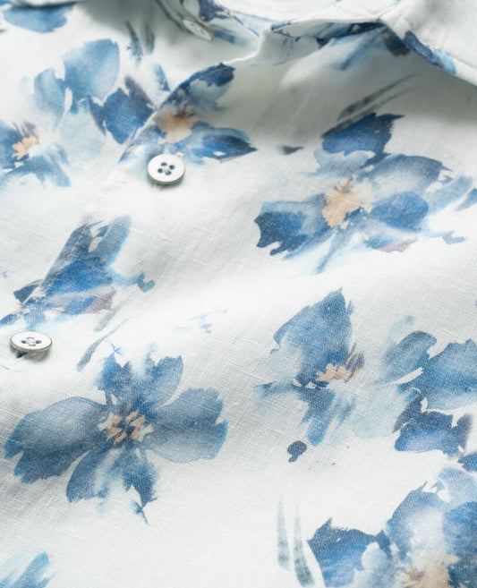 Rodd and Gunn White with Blue Floral Portland Island Sports Fit Fine Linen Shirt