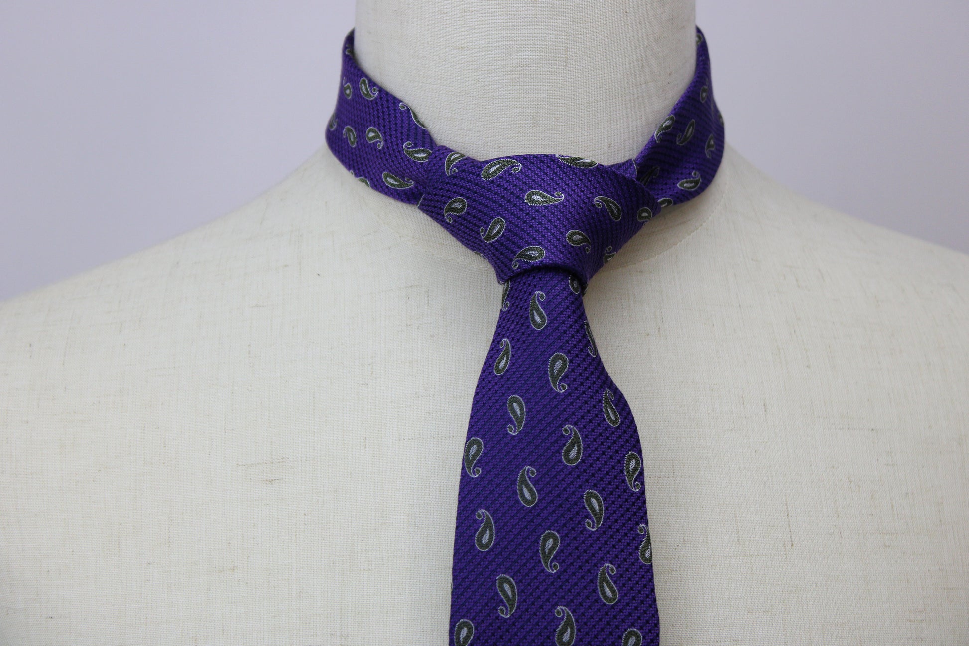 A handsome purple paisley 59-inch-long tie in 100% silk. Handmade.