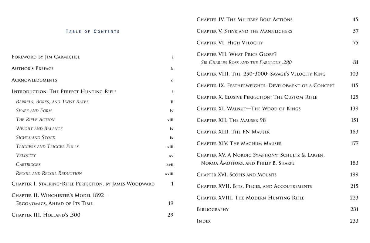 The rifles featured in the book, all personally owned by the author and described in loving detail, were chosen for their particular importance. Each rifle either represents a particular era of gun making, is historically important, or is simply a paragon of gun making skill. In his treatment of these special rifles, Wieland provides a close look at some individual guns that are superb in a unique way, and which illustrate high points of the twentieth century. Each chapter is dedicated to one particular rifle, and is accompanied by photographs of the author's own examples, including: