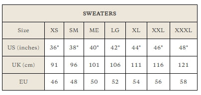 - Model is wearing size ME and measures: Chest 97cms/38", Height 185cms/6'1"