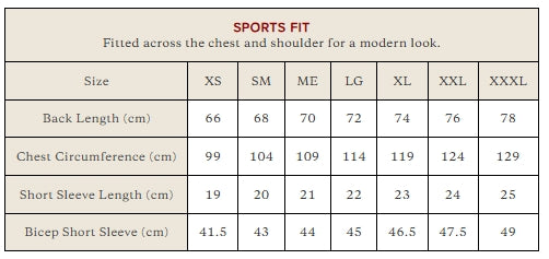 - Sports Fit - Fitted across the chest and shoulder for a modern look