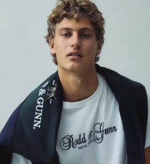 Crafted from premium Australian cotton, this men's t-shirt in snow is a versatile foundation for any casual ensemble. It features a Sports Fit, fitted across the chest and shoulder for a modern look. The soft and breathable jersey, crafted from cotton yarn, offers a subtle textured appearance. Details include a high retention ribbed crew neck, reinforced internal back neck and shoulder seams, and cover stitched sleeve and body hems. The Rodd & Gunn script embroidery adorns the chest. This garment is sewn using premium sewing thread, and its ultra soft interior seams reduce friction, offering a smooth feel against the skin. It has been pre washed for enhanced softness and to help prevent shrinkage. Pair it with your favorite denim for a relaxed weekend look, or layer it under an open linen shirt for a refined casual outfit.